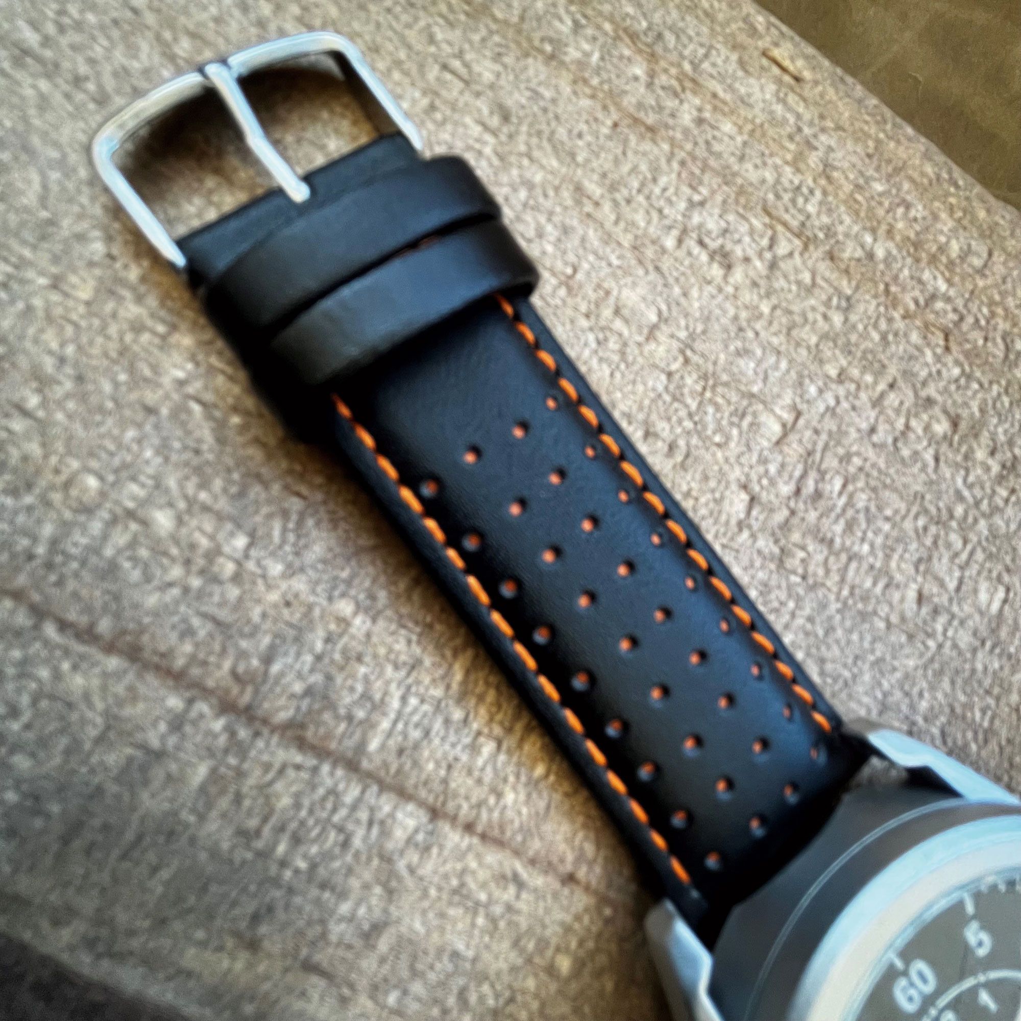 Es una correa de cuero para reloj alomada, con un pequeño acolchado interior para darte cuerpo (consultar grosor en la ficha tecnica un poco más arriba). Pensada tanto para relojes clásicos como deportivos siempre y cuando la caja no alcance un grosor excesivo.