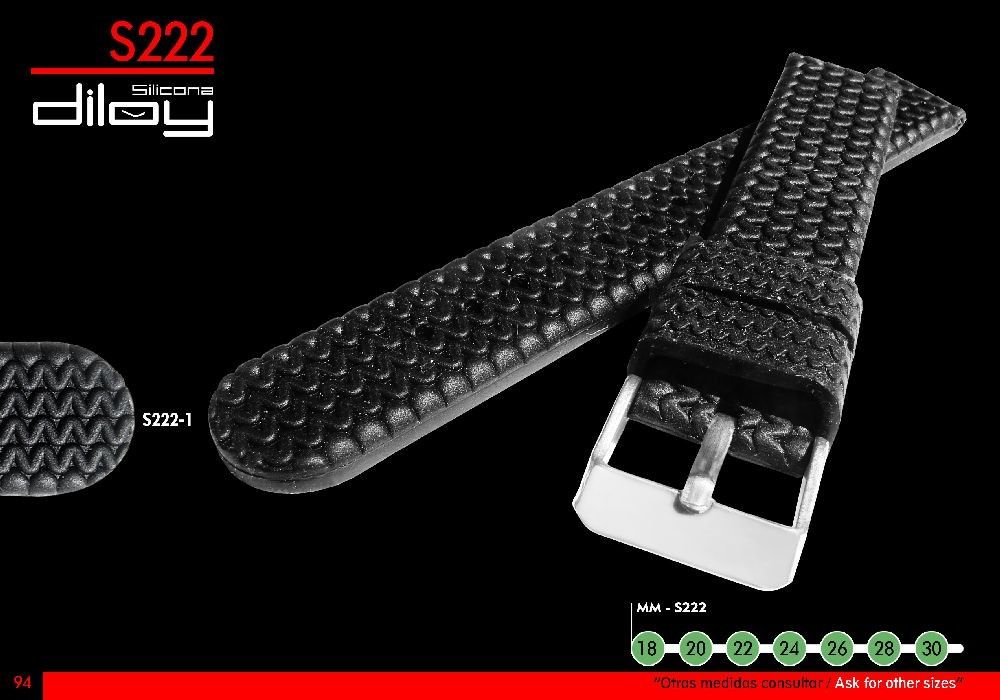| Titulo_Corto | Bracelet de montre - Bracelet du Silicone noir avec motif bande de roulement - Diloy S222 |
