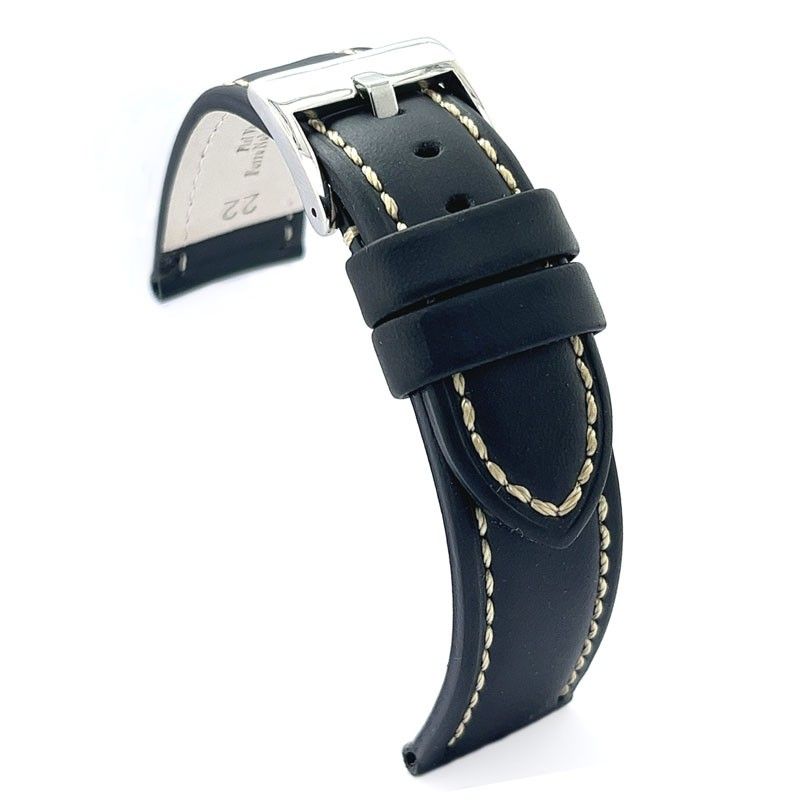 È un cinturino orologio pelle bombato, con una piccola imbottitura interna per dargli volume (consultare lo spessore nella scheda tecnica un pò più in alto). Pensato tanto per gli orologi classici quanto per quelli sportivi, sempre e quando il quadrante non abbia un volume eccessivo.