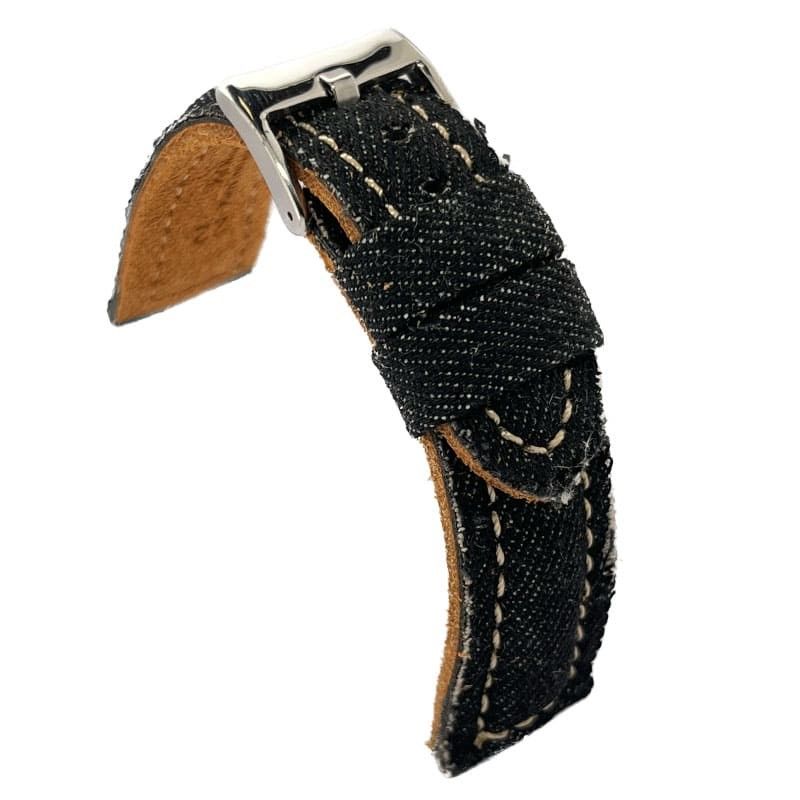 Para fabricar essas pulseiras para relógio, usamos tecido denim. Esse é o mesmo tecido que seria usado para fazer uma calça jeans. Nós até tentamos encontrar o efeito de desgaste que você gosta nessas peças de roupa.